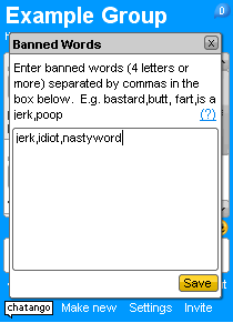 | Chatango provides multiple moderation mechanisms that allow group chat owners (i.e. users that created the group chats) and moderators that they make to ban unwanted users and delete their messages. Please click here for more information.